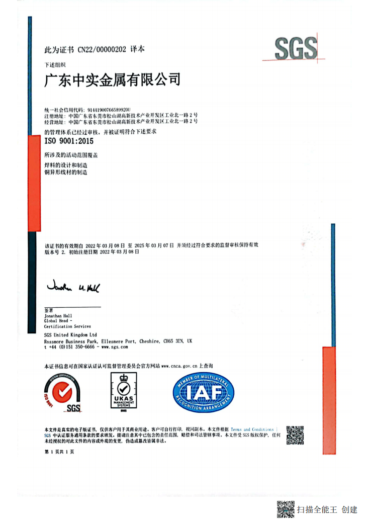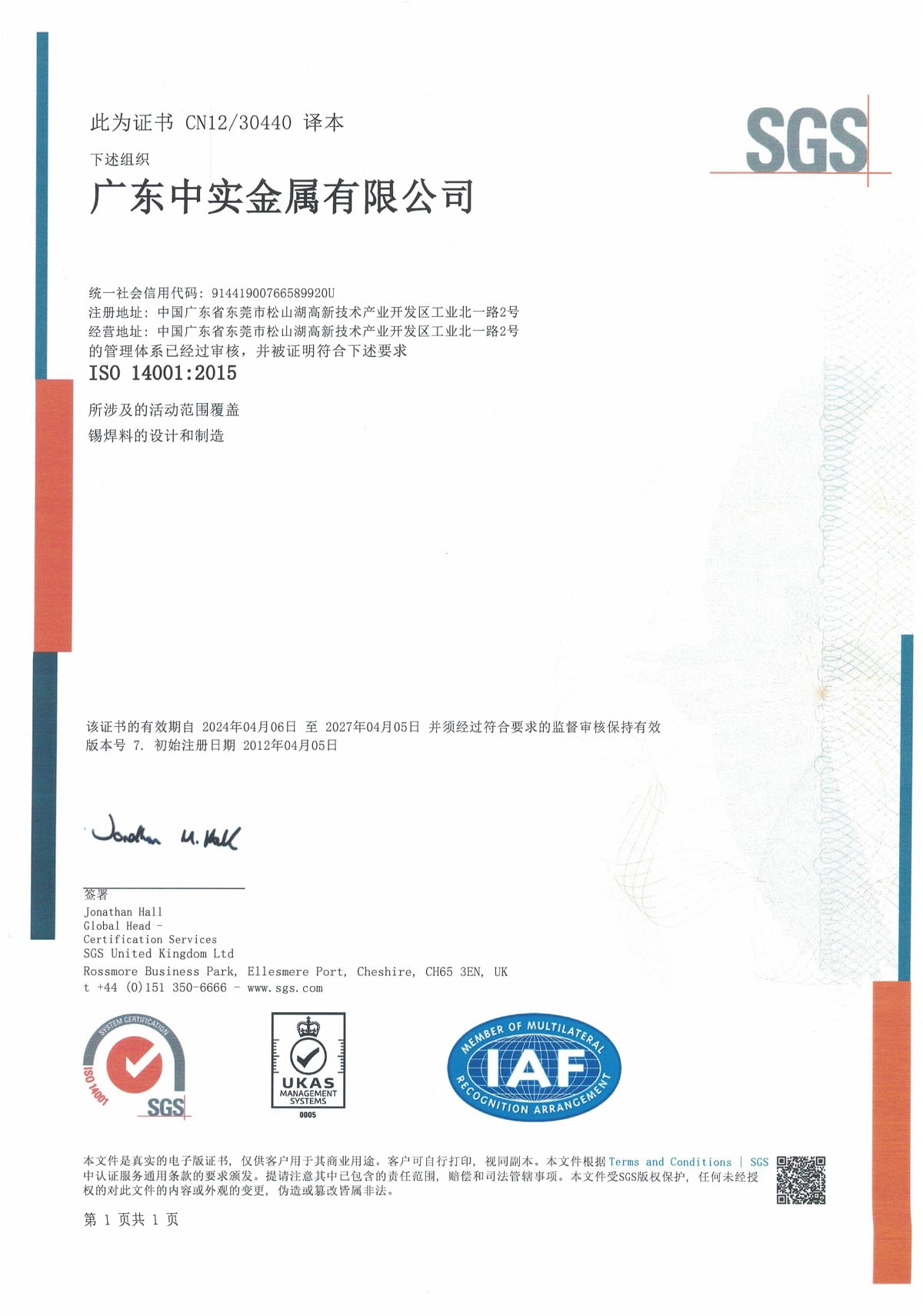 作(zuò)為(wèi)深耕高端焊料20多(duō)年的行业头部企业,中(zhōng)实金属不仅重视企业产(chǎn)品质(zhì)量管控,也看重企业与环境的并行可(kě)持续发展,公(gōng)司一直遵循严格的管理(lǐ)體(tǐ)系进行产(chǎn)品研发和生产(chǎn),拥有(yǒu)被权威机构认可(kě)的國(guó)际化管理(lǐ)水平。
